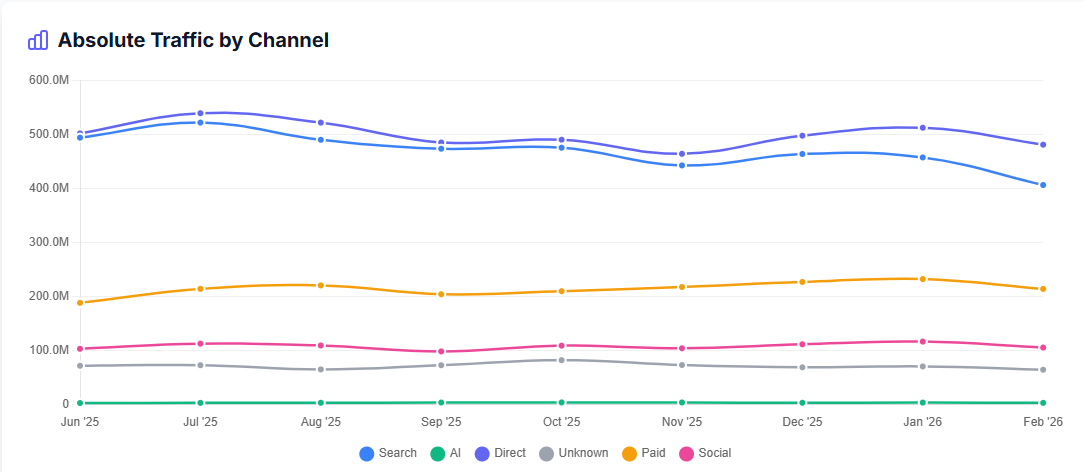 And as of February 2026, the traffic gap between traditional search and AI tool-driven website visits remains wide, significantly wider than the conference coverage might lead you to believe.